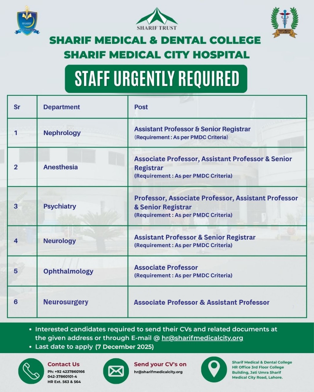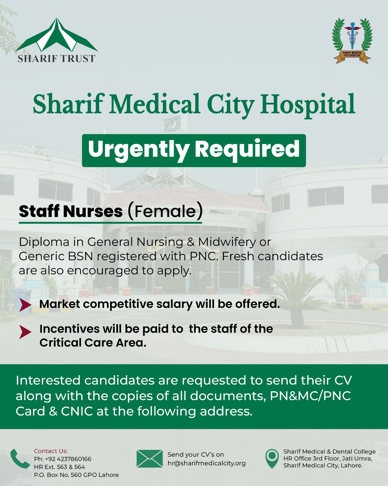 His broader vision was to develop a network of hospitals especially in underserved rural areas. This vision culminated in the founding of Sharif Trust in 1995, supported by contributions from his family. The Trust is dedicated to developing and operating healthcare and educational institutions, including the Sharif Medical City Hospital—a 503-bed, crescent-and-star-shaped tertiary care facility offering comprehensive healthcare services.